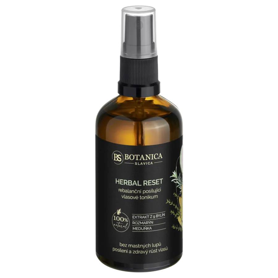 Vyvažující a posilující vlasové tonikum pro mastné vlasy a vlasovou pokožku se sklonem k nadměrné tvorbě kožního mazu obsahuje extrakt z devíti bylin: